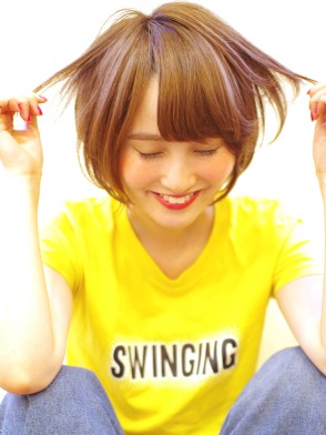 ひし形シルエットのショートボブ。 前髪があるので少しかわいい印象になります。